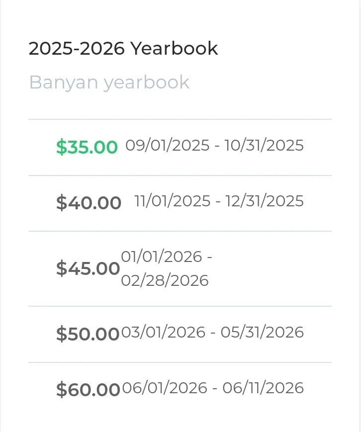 The Banyan Yearbook is more than just a book, it’s a keepsake filled with the moments, smiles, and milestones that make each school year unforgettable. From class photos and candid snapshots to special events and spirit days, every page tells the story of our amazing Banyan community.
